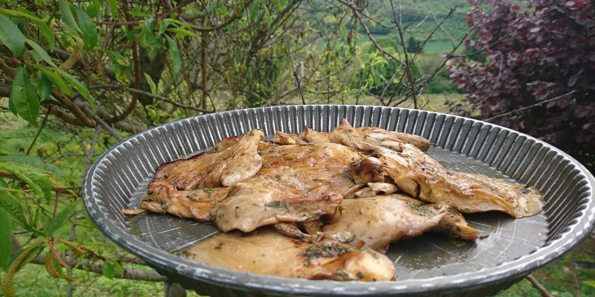 - Pour la recette 2, "Émincés de pleurotes en papillote", on prend tout ce qui reste de la grappe (moins la base, cf explication 10 lignes plus haut) et on le débite en petits dés ou fragments.